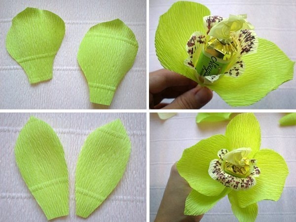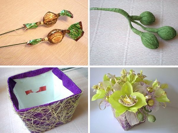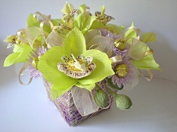 Цветы из гофрированной бумаги и конфет. Мастер-класс