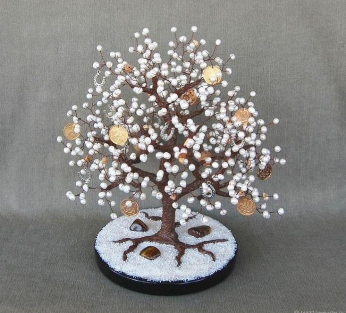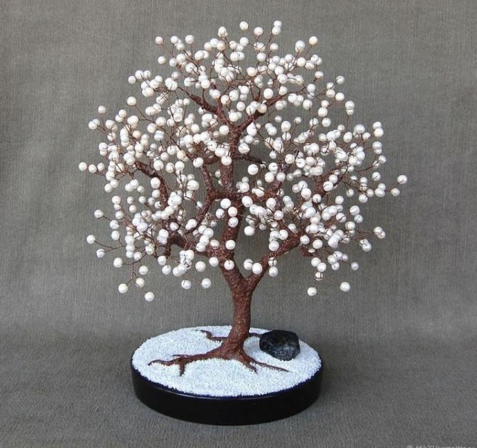 На некотором расстоянии от бусин проволоки сплетаются вместе, образуя толстые ветки.