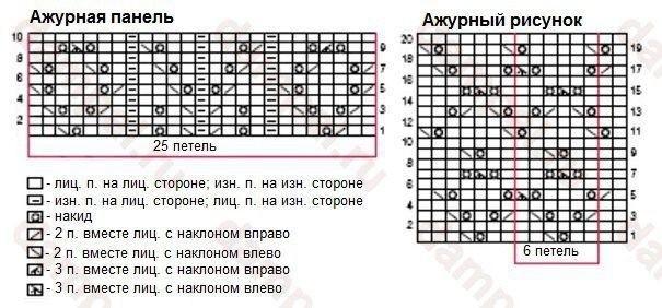 Плотность вязания: 24 петли и 32 ряда =10 см ажурного рисунка после отпаривания.