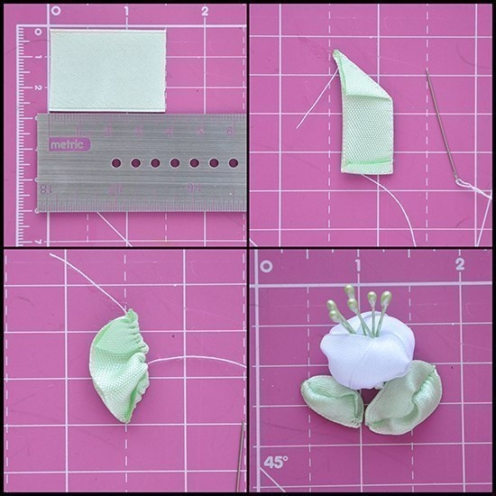 Цветочки из атласных лент: мастер-классЕсли сделать их белыми, то будут очень похожи на цветы жасмина.