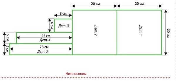Прямоугольники выкройки строятся на основе обхвата шеи.