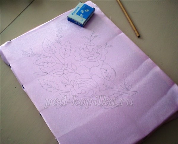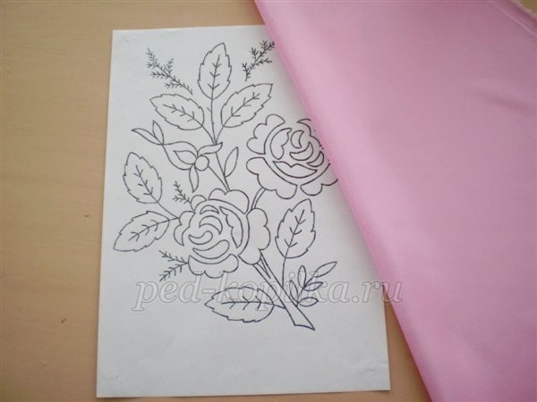 1. Перевести рисунок на ткань путем наложения ткани на рисунок