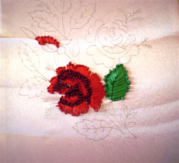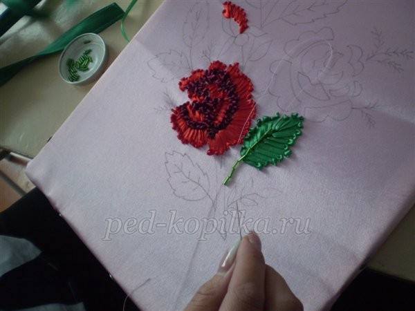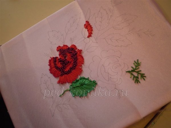 8. Вышиваем все элементы рисунка, на изнаночной стороне закрепляем края ленты.