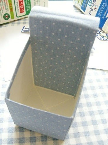 Желательно показать процесс наклеивания декоративной бумаги на коробку.