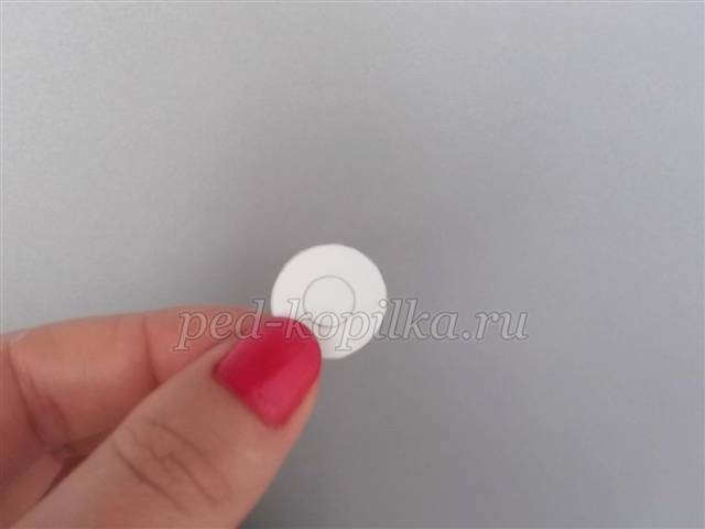 5. Из плотной бумаги вырезать круг диаметром 16 мм. Разрезать до середины и склеить в виде неглубокого конуса. В ходе работы я поняла, что нужно подбирать бумагу для конуса под цвет соцветий.