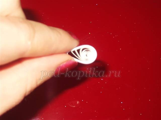 18. Скрутить в ролл и распустить в диаметре 16мм и 14 мм. Это большие и маленькие крылья. Зафиксировать при помощи булавок и клея