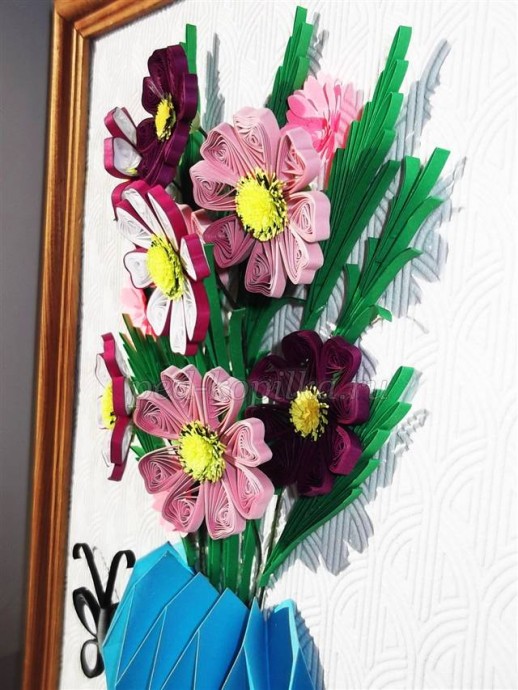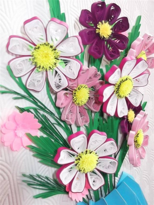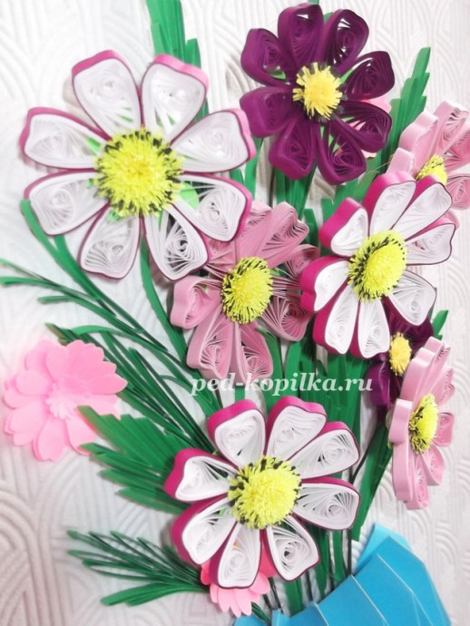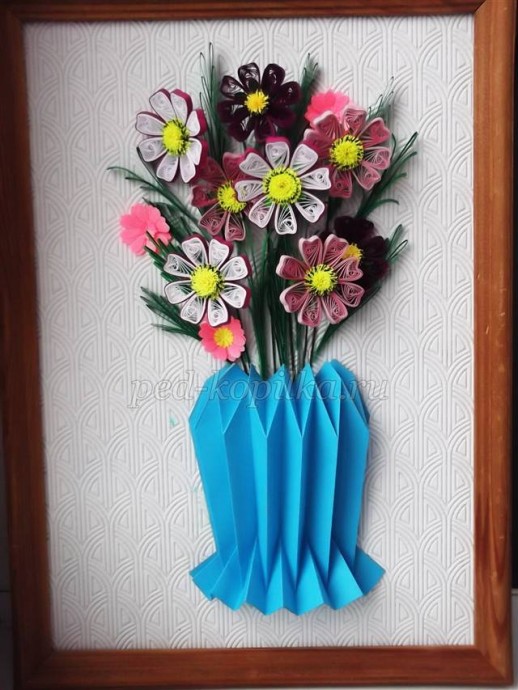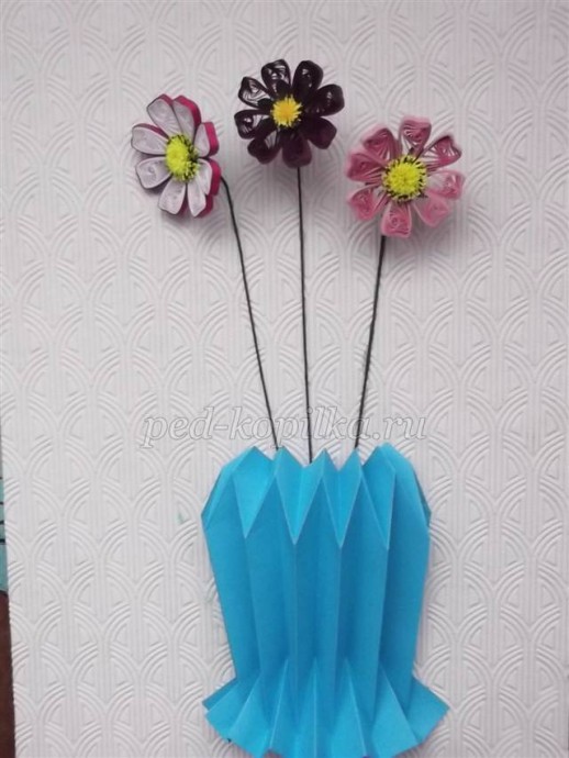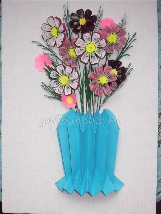 15. Белые обои служат фоном. Ваза сложена из гармошки. Приступаем к сборке на горячий клей.