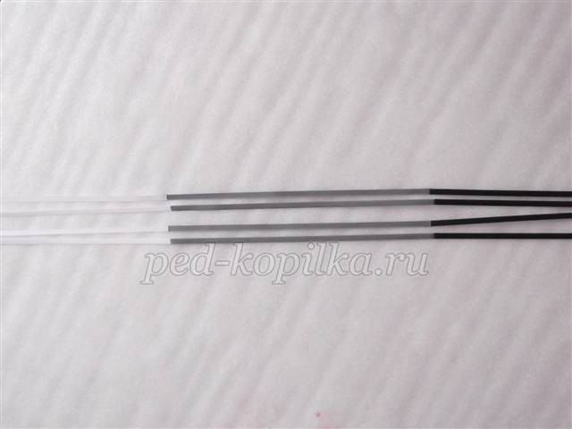 17. Взять полоски для квиллинга трех цветов (по вашему усмотрению) и разделить каждую пополам. Склеить одну длинную из трех цветов.