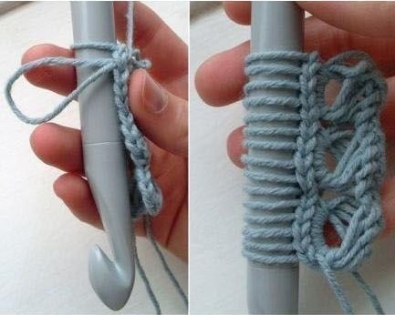 Набрать 17 возд. пет +3 пет. подъема, в 4-ю пет пышный столбик,пропустить 1 пет и ещё пышный столбик-так 9 пышных столбиков. 3 пет подъема,вяжем пышные столбики между столбиками ...