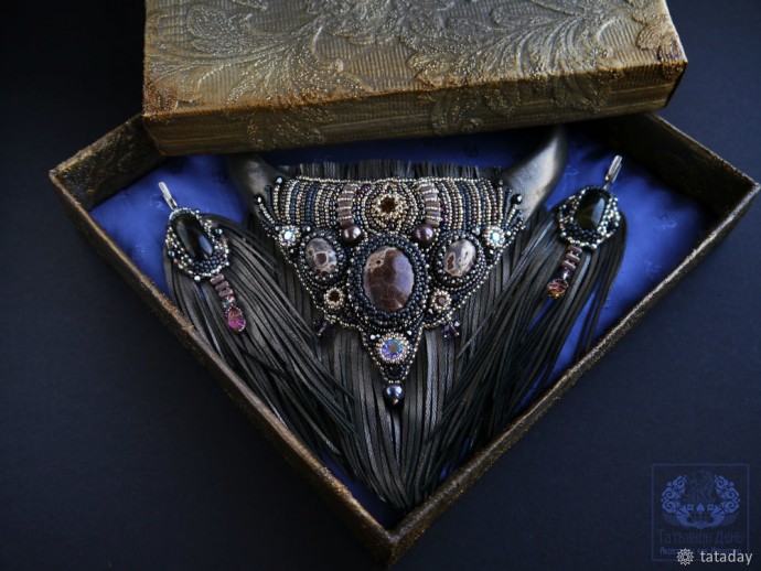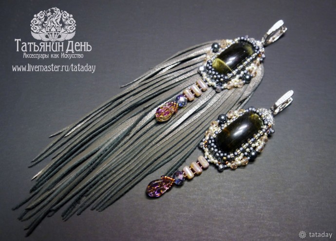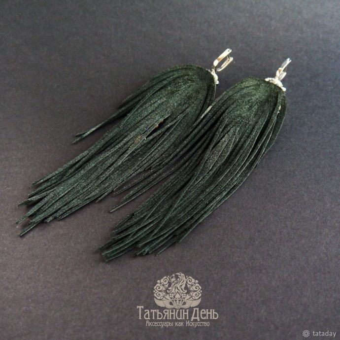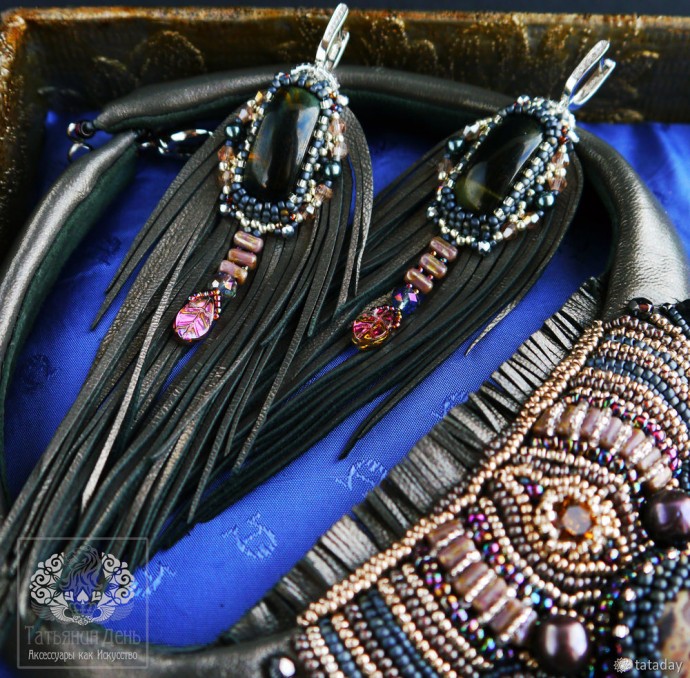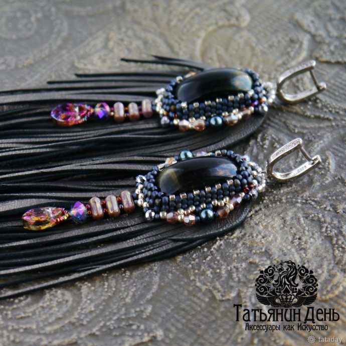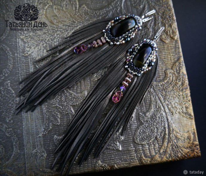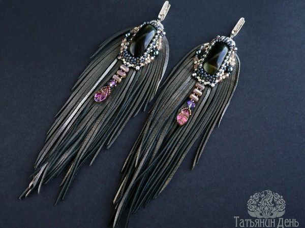 Если правильно соблюдена технология склеивания, получается очень надежная конструкция без дополнительного пришивания! Этот способ подходит для изделий, где нагрузка на изнанку не накладывается. Она закрыта, сбоку тоже все аккуратно. Нигде не видно фетровую основу. Кожа очень легкая, вес серьги складывается, в основном, за счет центральной бусины и других элементов оплетки, нагрузка лежит на швензе, которая тоже очень надежно прошита.