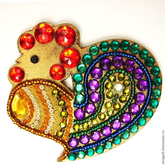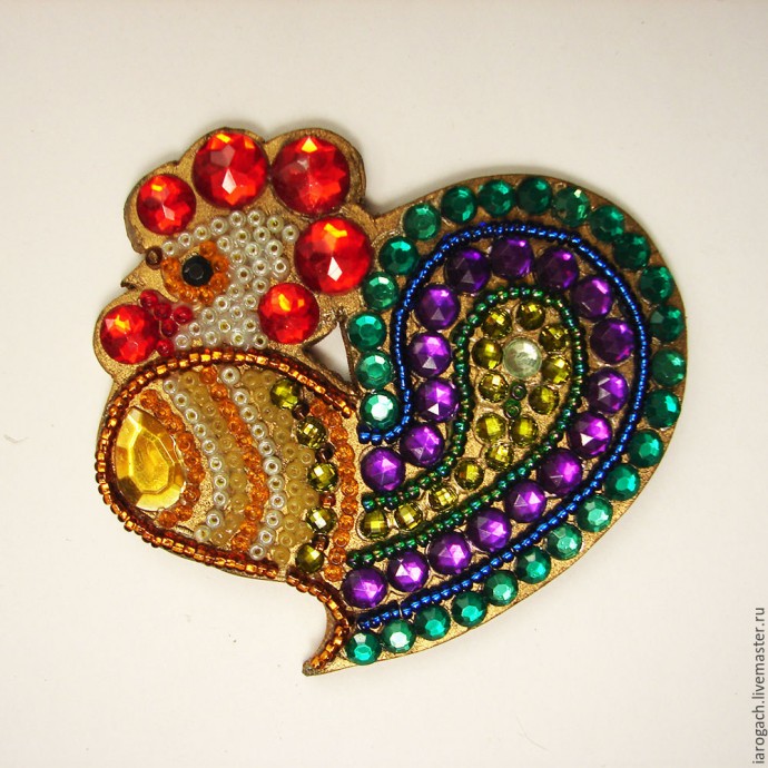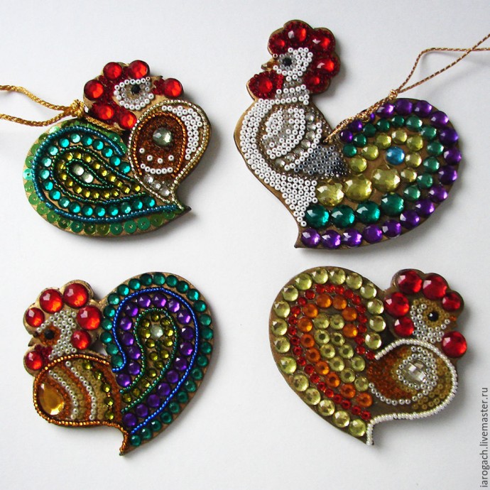 Не бойтесь экспериментировать, в создании петушков можно использовать и пайетки, и красивую тесьму, и микробисер. Стоит начать, а там уж фантазия сама разыграется, не удержишь