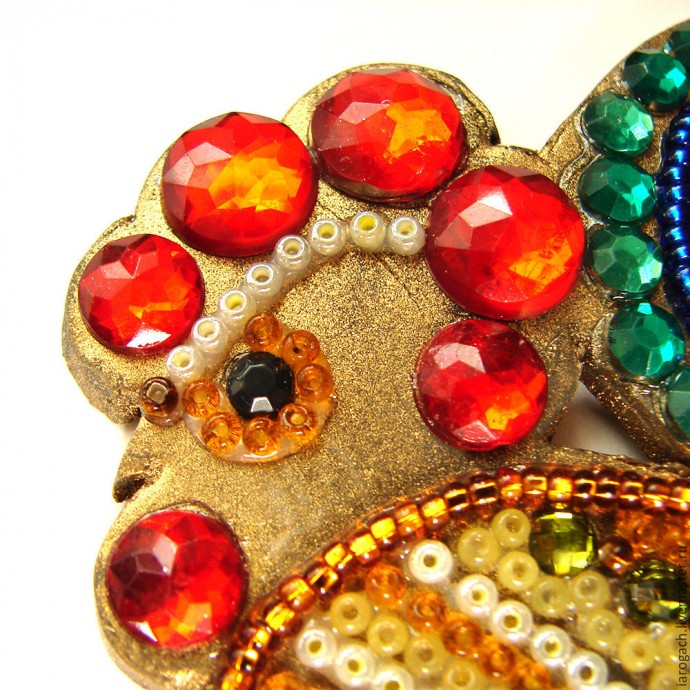 Материалы: бисер, стразы, картон, полимерная глина, клей прозрачный, чешский бисер, стразы акриловые
