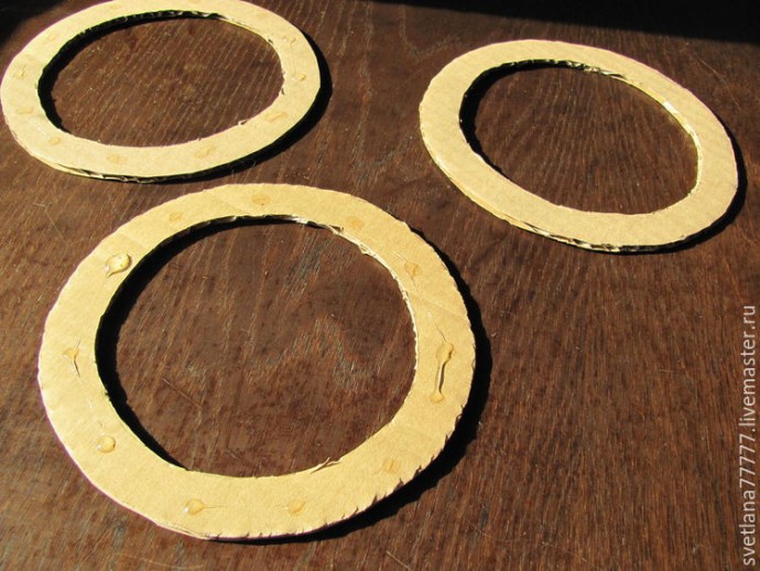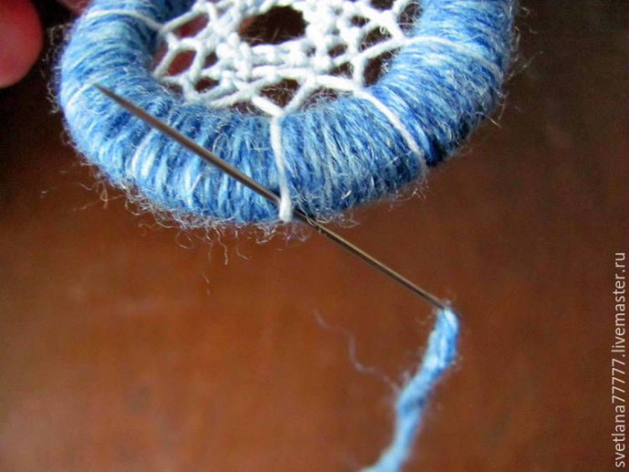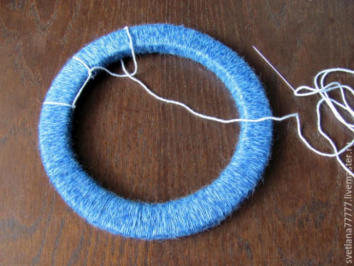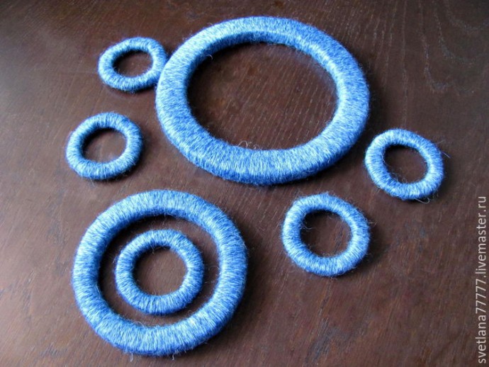 Теперь обмотаем все кольца шерстяной нитью.
