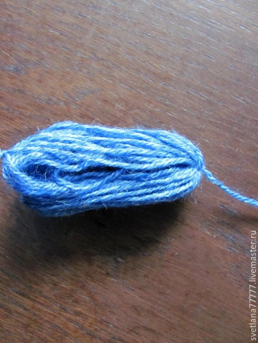 Для этого наматываем на руку шерстяные нити. Толщина намотки зависит от того, какой толщины вы хотите бубенцы.