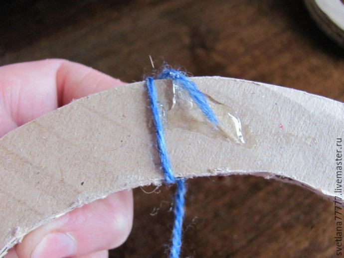 С одного края привязываем нить.
