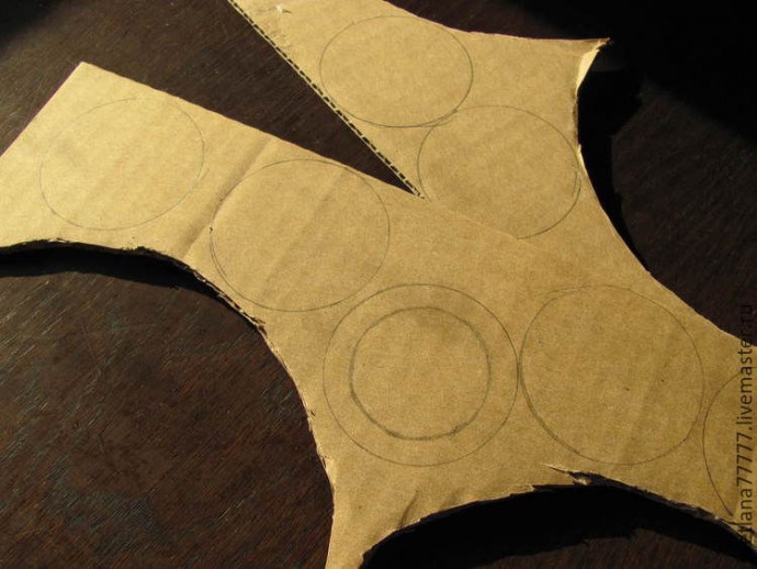 И, наконец, обводим маленький стаканчик или рюмку. Снаружи побольше диаметром, а изнутри поменьше. Толщина кольца около 5 мм. Таких колечек надо 10 шт.