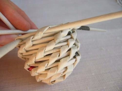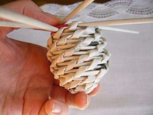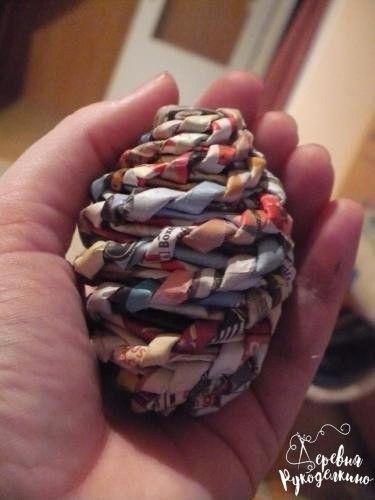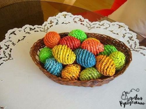 Эти пасхальные яйца плетутся из газетных трубочек.