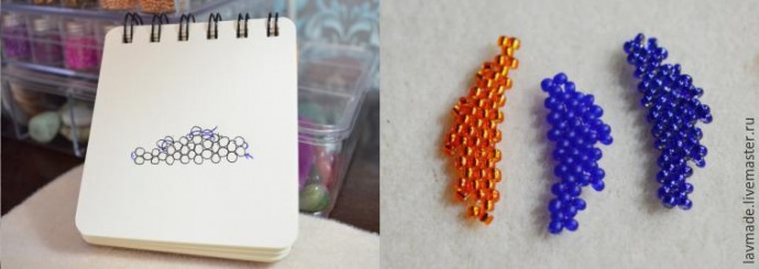 2. Поле того, как наш камень готов, нужно подготовить вот такие плетеные лепесточки. Плетутся они тоже мозаичным плетением. Длина каждого варьируется в зависимости от необходимости.