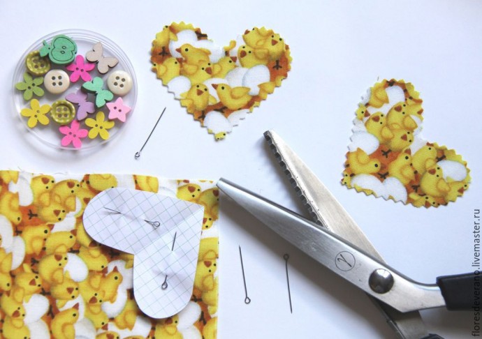 2. С помощью булавок прикалываем самую маленькую выкройку к хлопковой ткани, вырезаем по контуру выкройки.