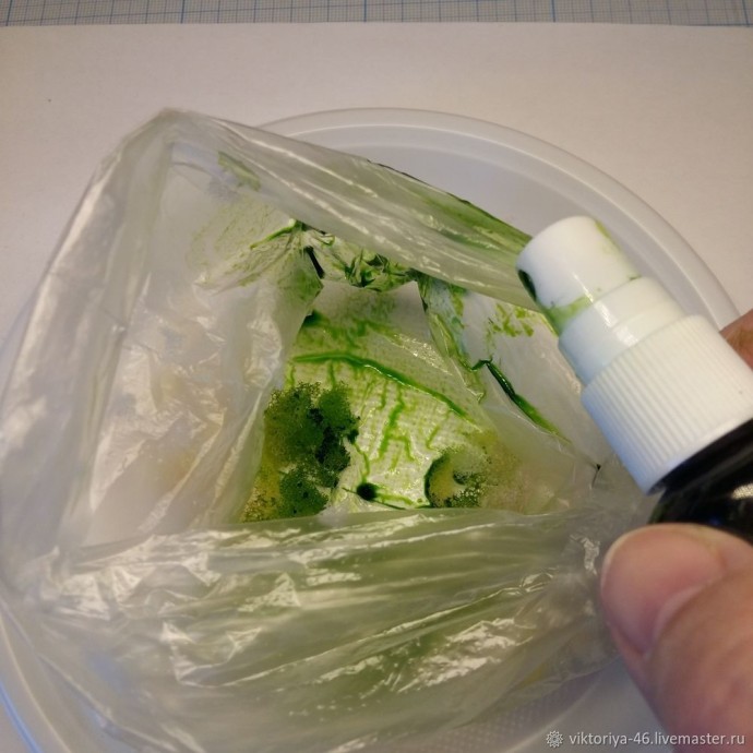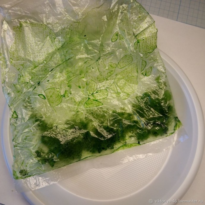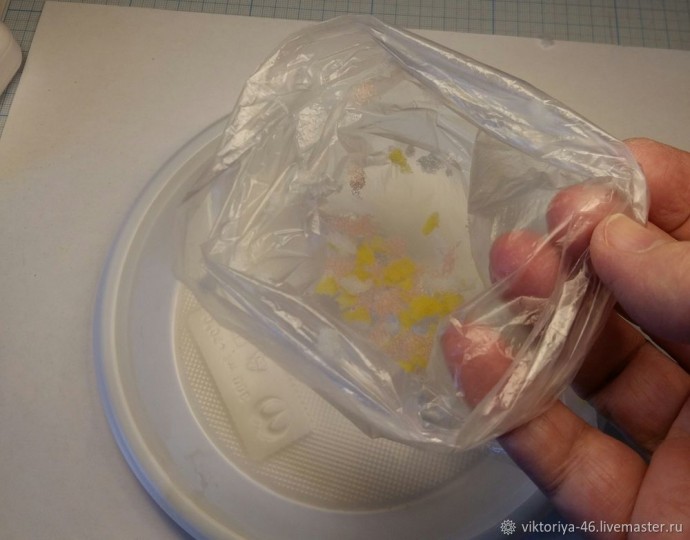 Содержимое пакета высыпаем на пластиковую тарелку и ждем когда все высохнет. Алкогольные чернила сохнут быстро