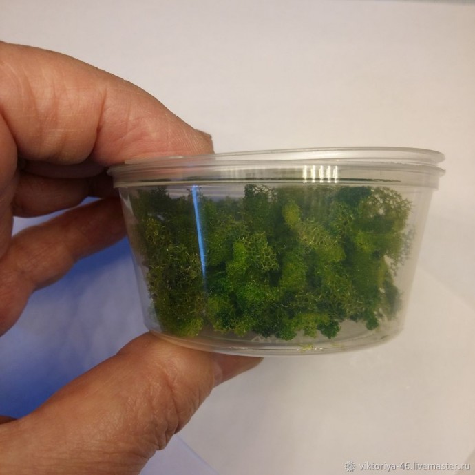 Высохший «мох» отправляем в контейнер и ставим на полку для будущих идей