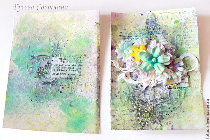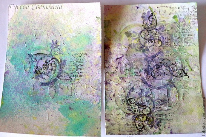 5. Далее я взяла штампики и чернила и штампуем фон.