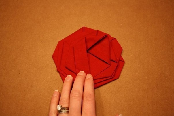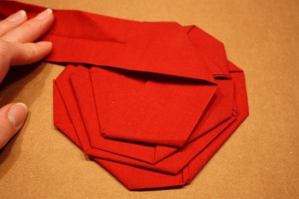 Накладываем ленту виток за витком, создавая острые повороты и сужая радиус лежащих сверху кругов.