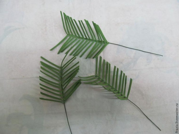 Затем собираем при помощи всё той же тейп-ленты всю веточку полностью с листьями.