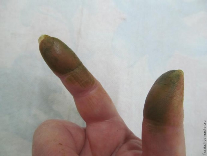Мне всегда невтерпёж, поэтому я не стала ждать высыхания краски и вот что получилось с моими пальцами:)