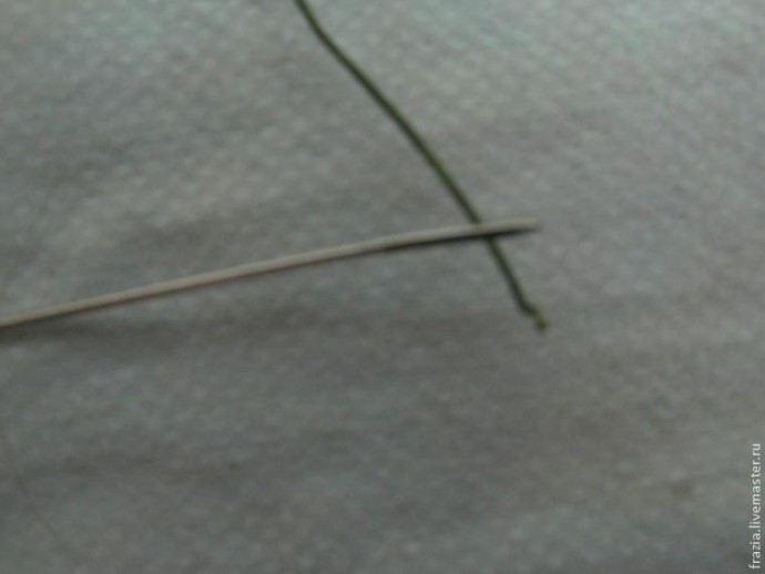 Тоненькую флористическую проволоку заправляем в ушко иголки, загибаем кончик проволоки и нанизываем шарик.