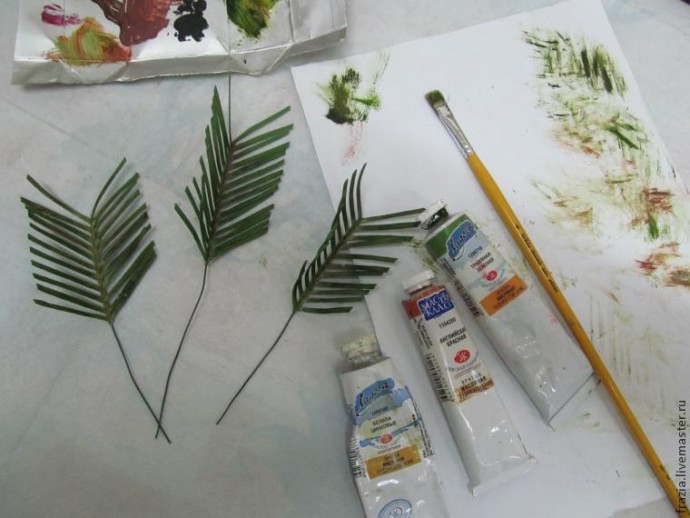 По желанию можно протонировать маслянными красками наши листочки.От этого они будут выглядеть более натуральными.