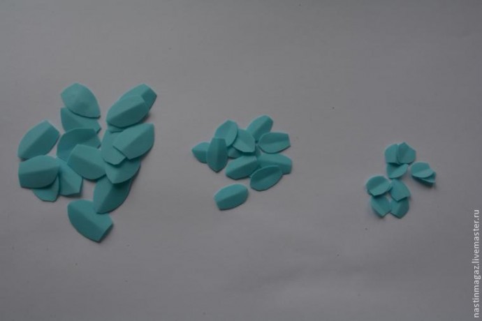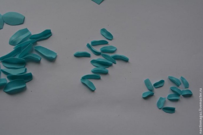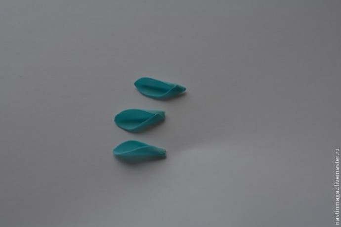 Каждый лепесточек прикладываем к утюгу на пару секунд. Затем сложенный вдоль лепесток слегка растягиваем в противоположные стороны.