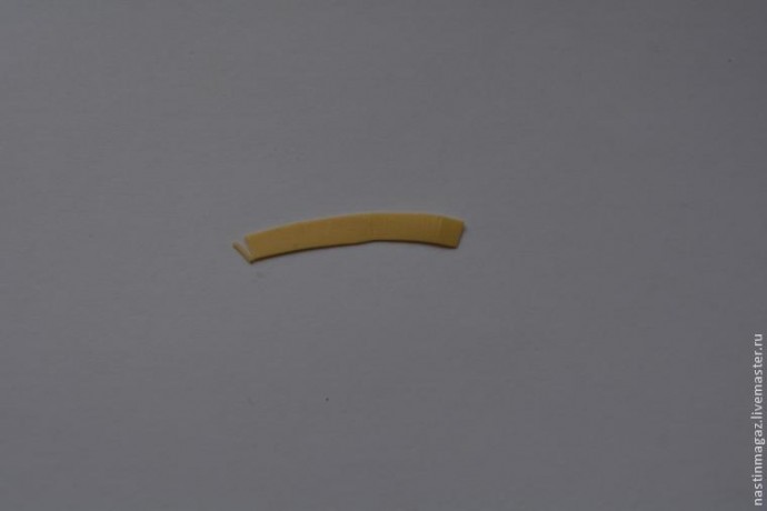 Для изготовления серединки возьмем полоску бледно-желтого фоамирана длиной 3 см и шириной 0,5 см, нарежем бахрому.