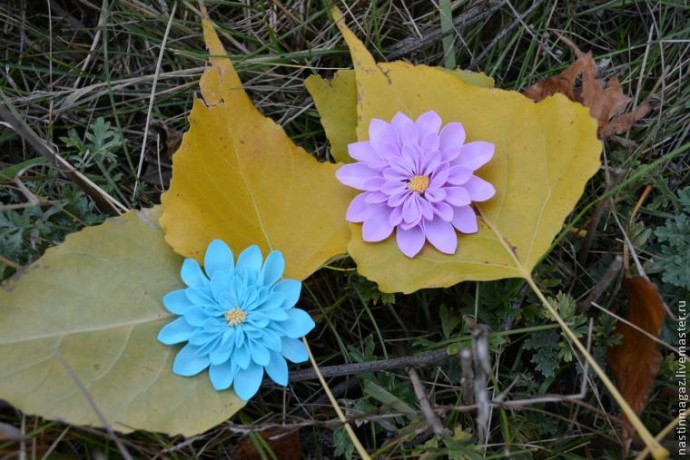 Диаметр цветка получился около 5 см, брошь небольшая, как я и хотела. Можно увеличить размер заготовок, думаю, получится не менее красиво, а работать с лепестками будет легче. Не смогла удержаться, сделала еще одну, другого цвета