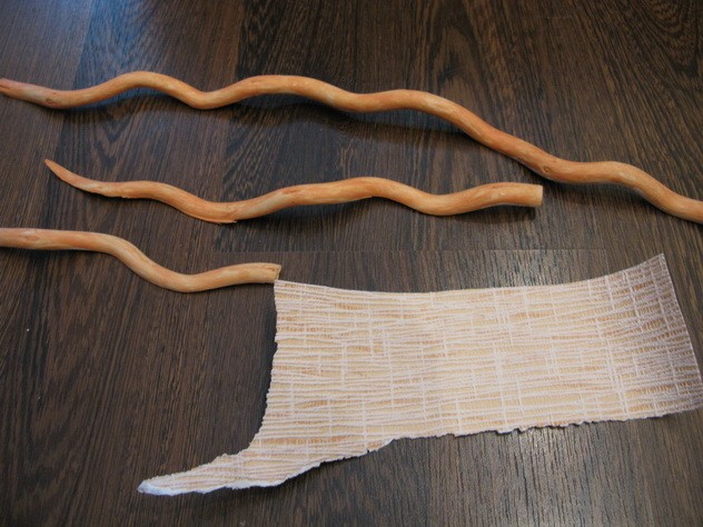 Замысел картинки приходит заранее. Далее в процессе работы что-то будет добавляться, что-то меняться. В работе будут использованы вот такие веточки от дерева саликс. Я покупала их в специализированном магазине. Вот из такой бумажной ленты буду делать цветочки.