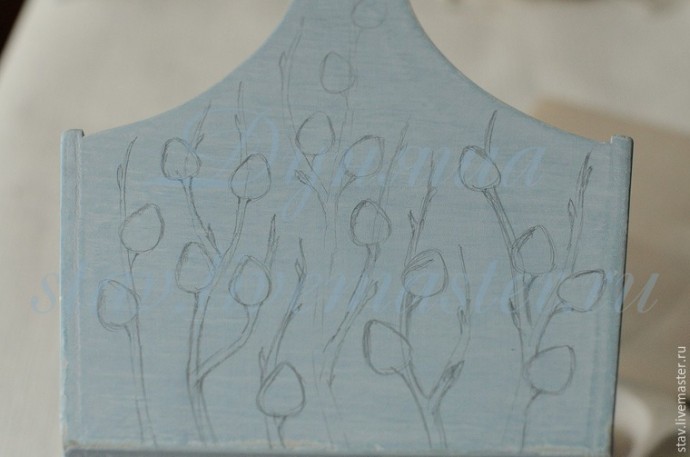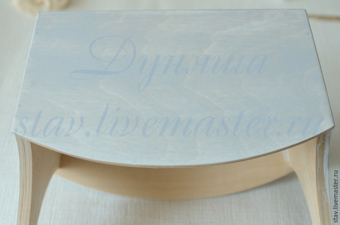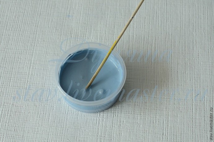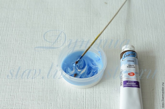 Для этого я смешиваю белила титановые и синюю краски. Просушиваю не меньше трех часов, шлифую. Второй слой: те же цвета + немного умбры жженой.