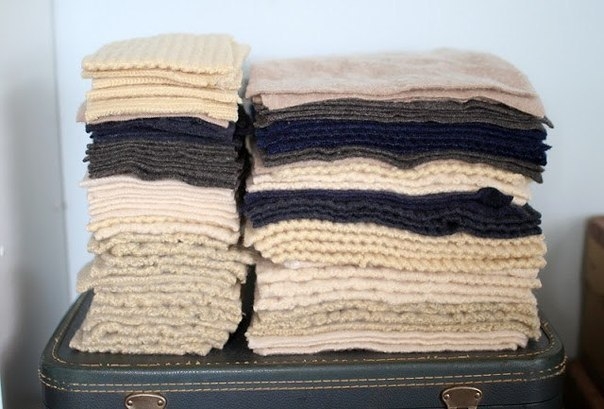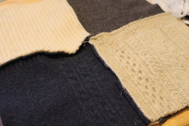 То, что разложено на полу, как я поняла, это план раскладки частей свитеров, так можно наглядно подобрать рисунок, или я не права? А идея мне понравилась и с изнанки можно сделать подкладку из любого материала, и прострочить по линиям соединения частей, чтобы не сбивалось.