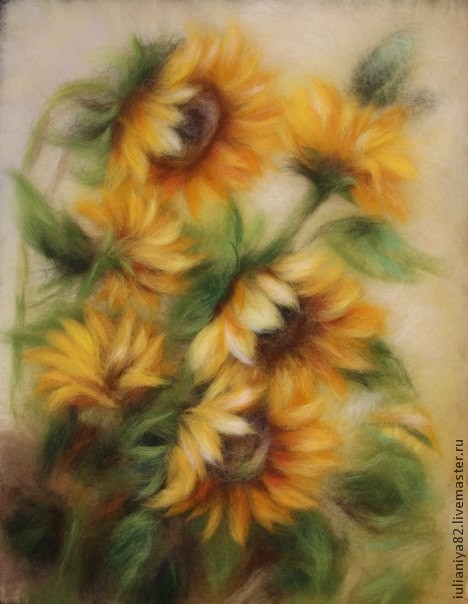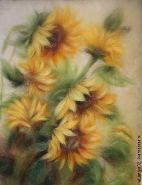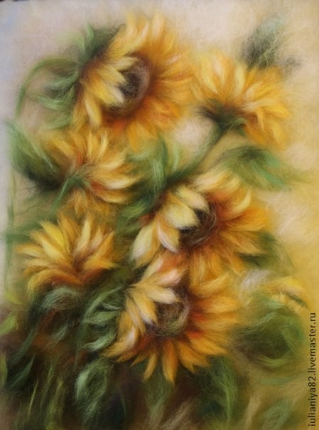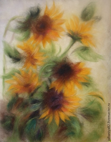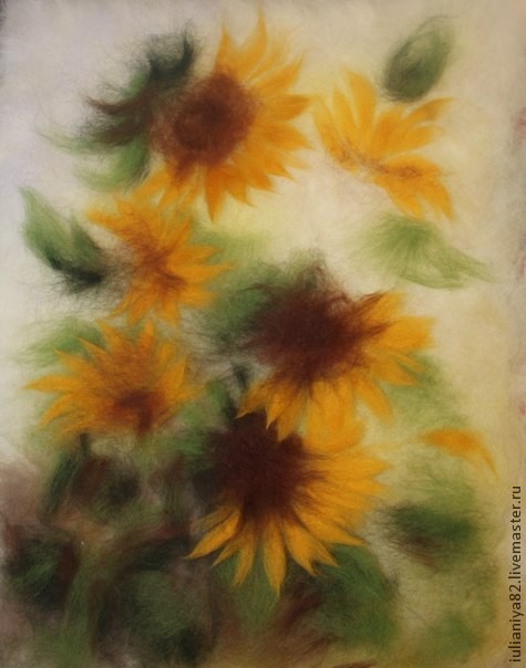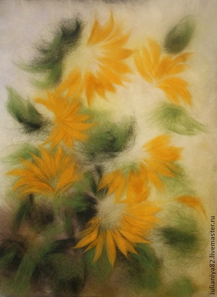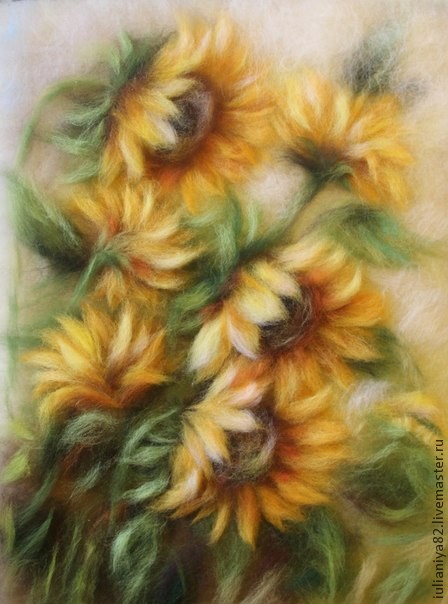 Рисуем подсолнухи шерстью