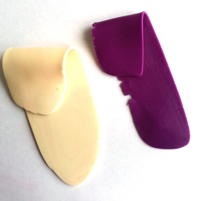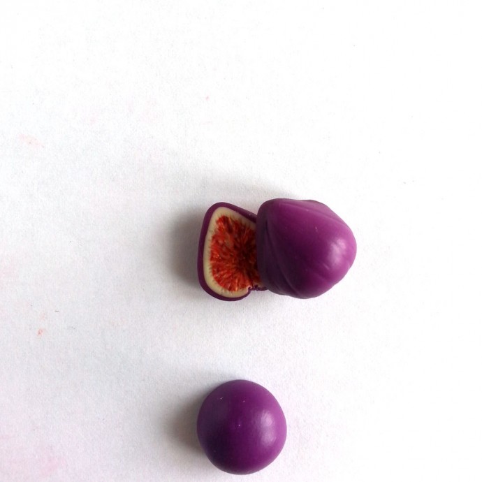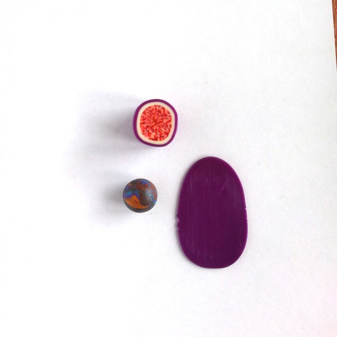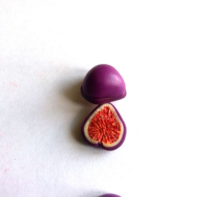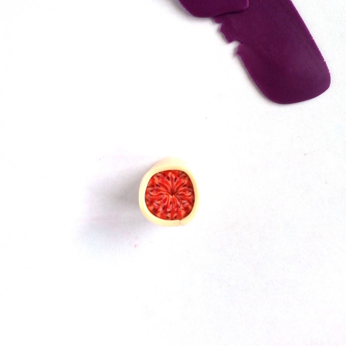 Для создания половинки инжира, ее внутренней части, можно использовать сорную пластику, обернутую тонким фиолетовым пластом (того же цвета, что и внешняя часть инжирной трости).