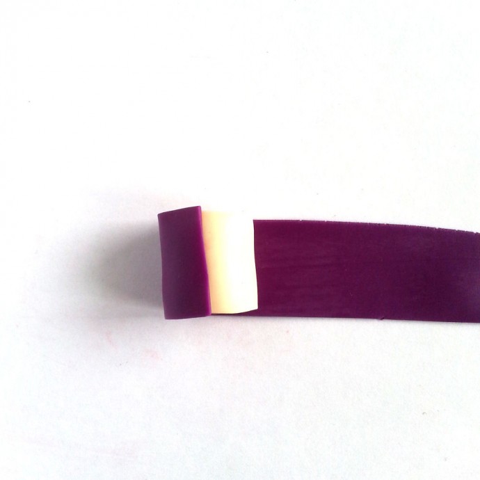 Оборачиваем трость с мякотью сначала бежевым пластом. Без нахлеста, стык в стык.