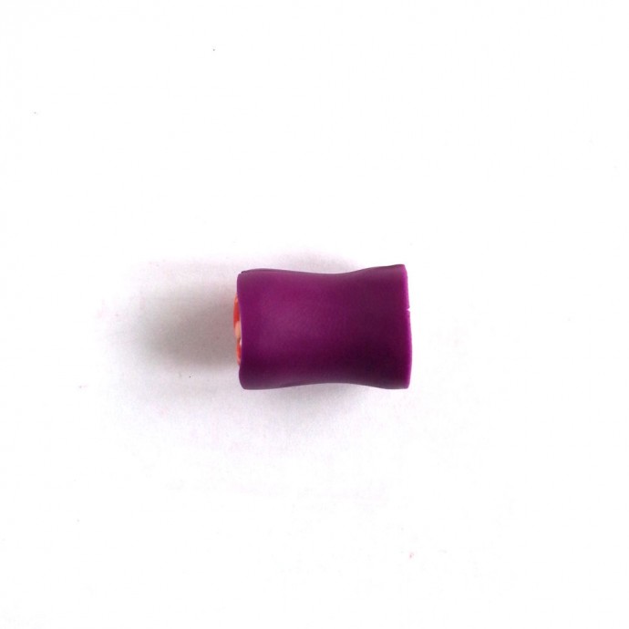 Оборачиваем шарик из сорной пластики фиолетовым пластом. Срезаем излишки, стараемся обернуть так, чтобы фиолетовый был в один слой. Катаем получившийся шарик в руках, пока не сгладим все стыки.