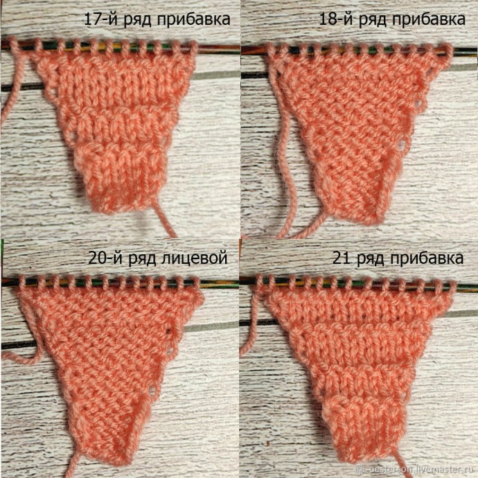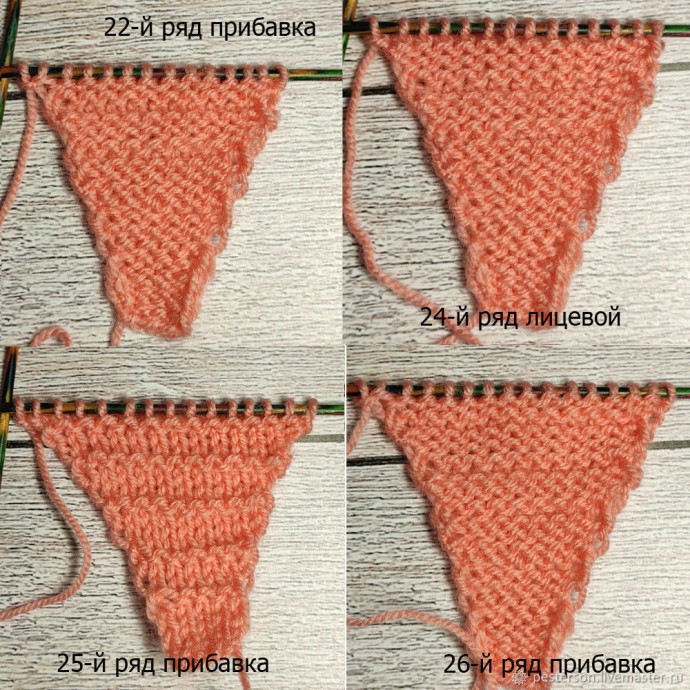(В начале каждого ряда первую петлю снимаем, последнюю провязываем кромочной)