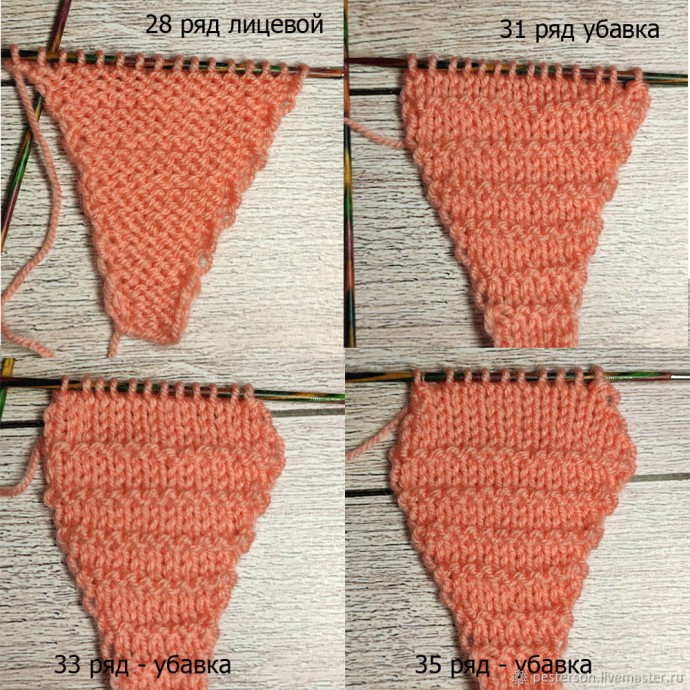 Начиная с 37 ряда (до конца) вязать с убавками в начале каждого ряда.