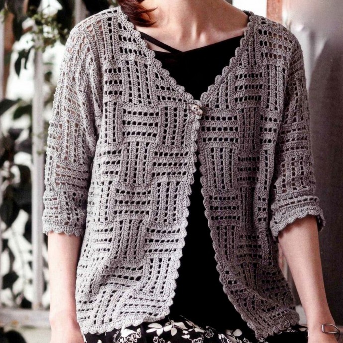 Кардиган застёгивается на одну пуговку, украшен фестончатой отделкой.С2С — очень простая и удобная техника вязания. Чаще всего её используют для вязания пледов и покрывал с различными рисунками или просто необычными цветовыми сочетаниями. Суть данной техники в том, что вы начинаете вязание с одного угла и заканчиваете в другом («corner to corner» в переводе с английского «из угла в угол»). Направление вязания всегда указывается стрелками на схеме.