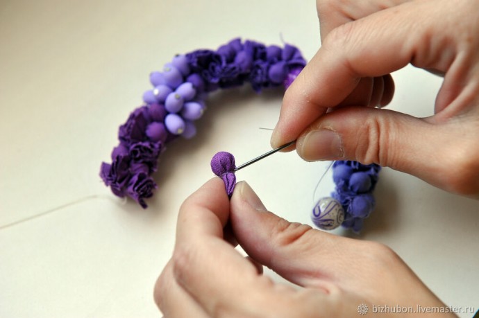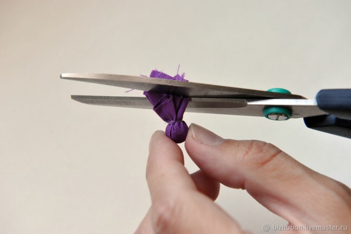 4. Лишнюю ткань обрезаем. Готовим 30-40 текстильных бусинок.