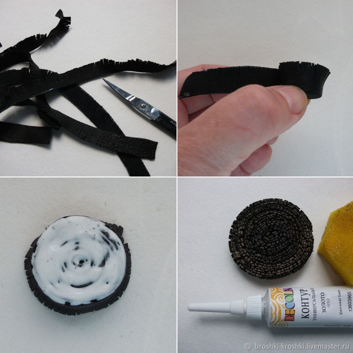 12. Полоску скрутите до нужного диаметра серединки (около 3-х см), и подклейте конец.