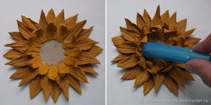 8. Затем в шахматном порядке приклейте лепестки 2-го ряда.