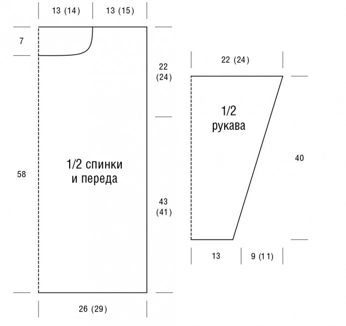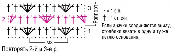 Плотность вязания: 15,5 п. х 6 р. = 10 x 10 cм, связано основным узором крючком №5.