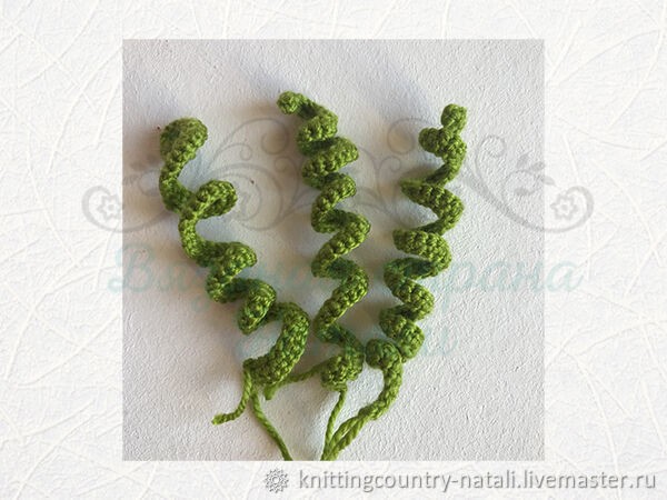 В следующем ряду ввязываем листики и усики.
