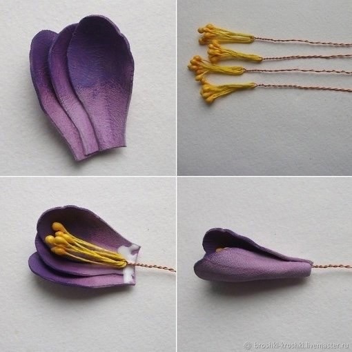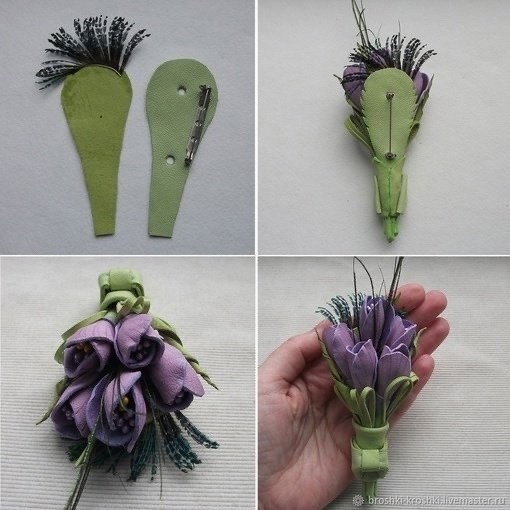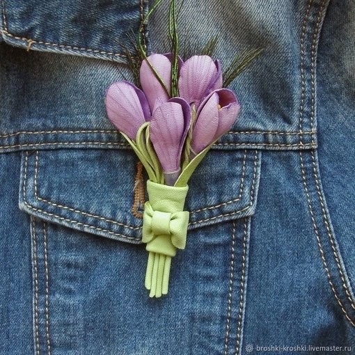 Мастерим кожаную брошь с крокусами